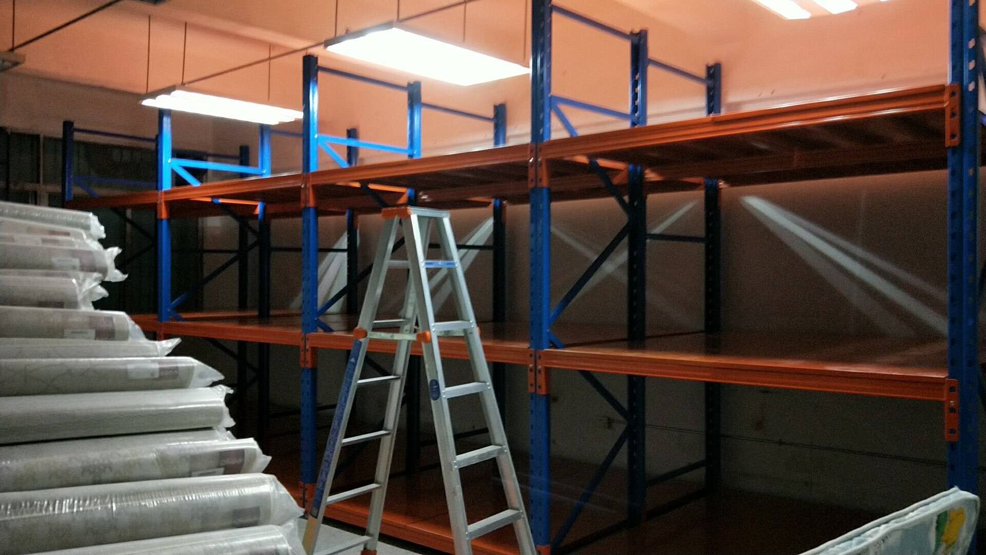 布料倉庫貨架其堆放的布匹,大多是卷狀的,其本身沒有大的支撐力,所以我們在設計貨架時,多使用木層板貨架或鋼層板貨架,布料直接放在層板上。