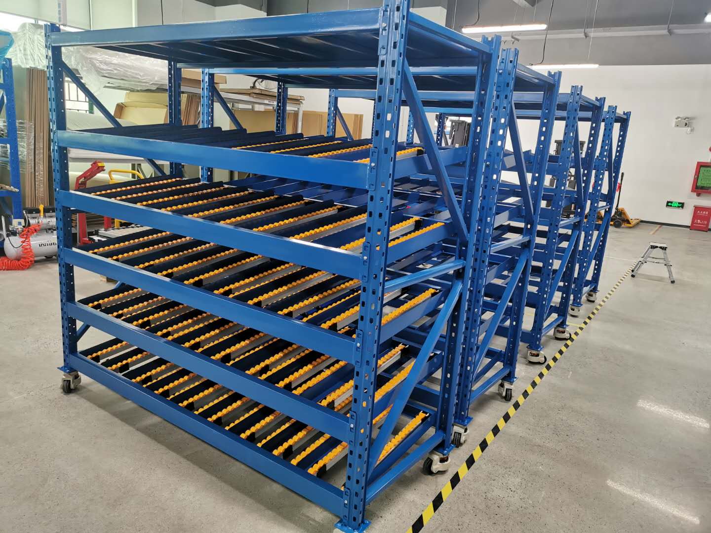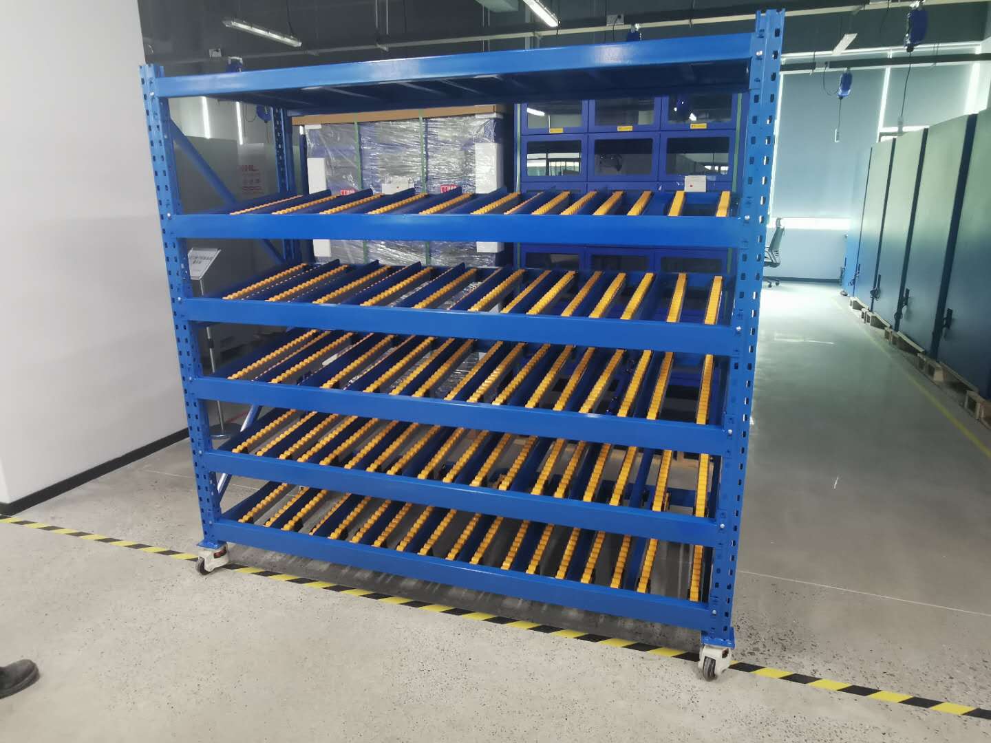 很多客戶不太明白流利貨架是有什么用處?是將貨物置于滾輪上,利用一邊通道存貨,另一邊通道取貨,料架朝出貨方向向下傾斜,貨物在中立作用下向下滑動(dòng),可實(shí)現(xiàn)先進(jìn)先出,并可實(shí)現(xiàn)一次補(bǔ)貨,多次揀貨,流利架存儲(chǔ)效率高,適合大量貨物的短期存放和揀選,流利架廣泛應(yīng)用于配送中心,裝配車(chē)間及出貨頻率較高的倉(cāng)庫(kù),可以實(shí)現(xiàn)貨物先進(jìn)先出,一次補(bǔ)貨,多次揀貨,可加腳輪便于線旁作業(yè).