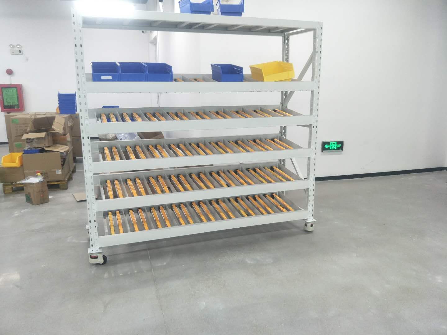 流利式貨架廣泛應(yīng)用于制造業(yè),商業(yè),配送中心,裝配車間以及出貨頻率較高的倉(cāng)庫(kù)流利式貨架,采用滾輪鋁合金,鈑金等流利條,利用臺(tái)架自重實(shí)現(xiàn)先進(jìn)先出,存儲(chǔ)方便,適用于裝配線兩側(cè)配送中心等場(chǎng)所.